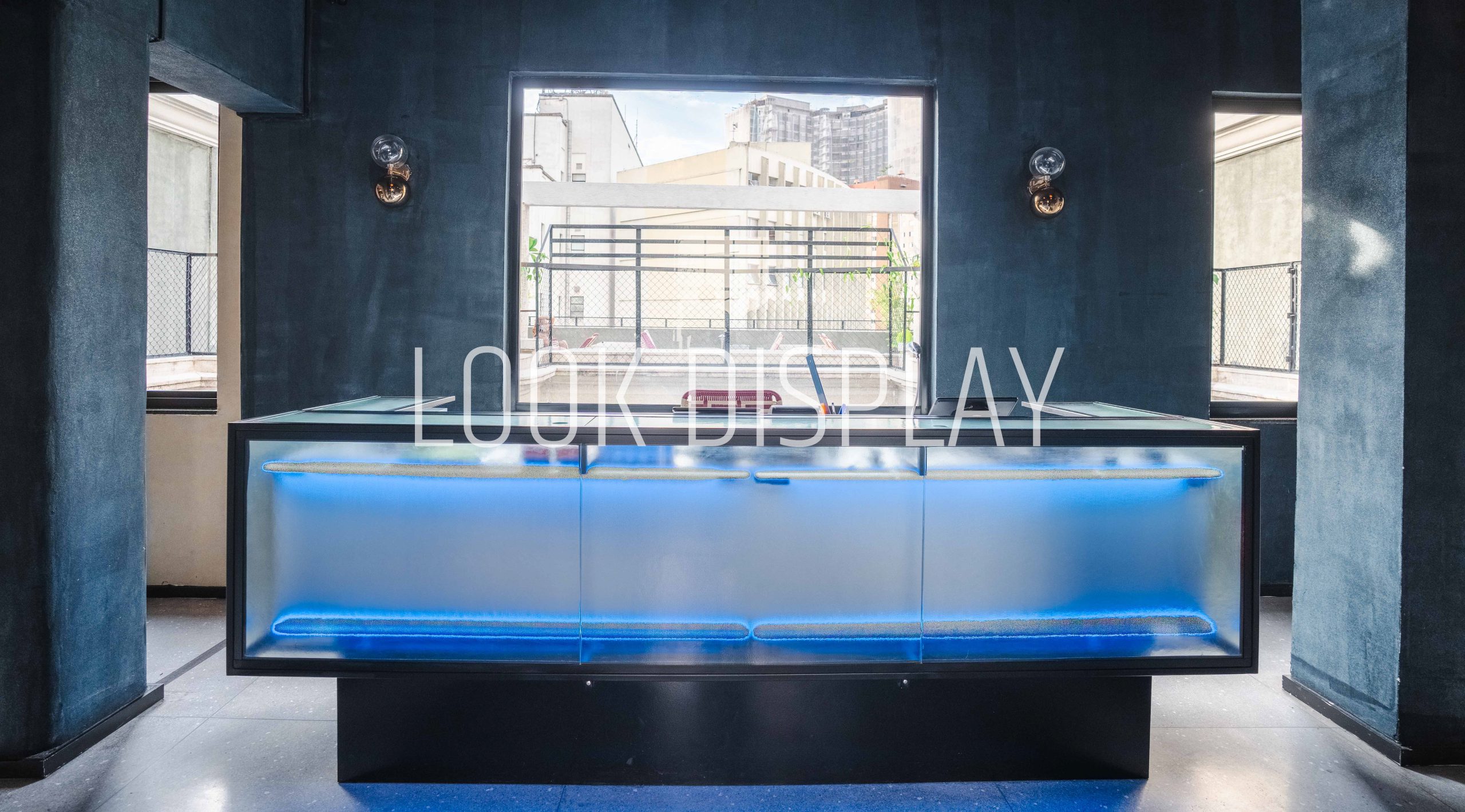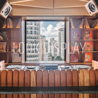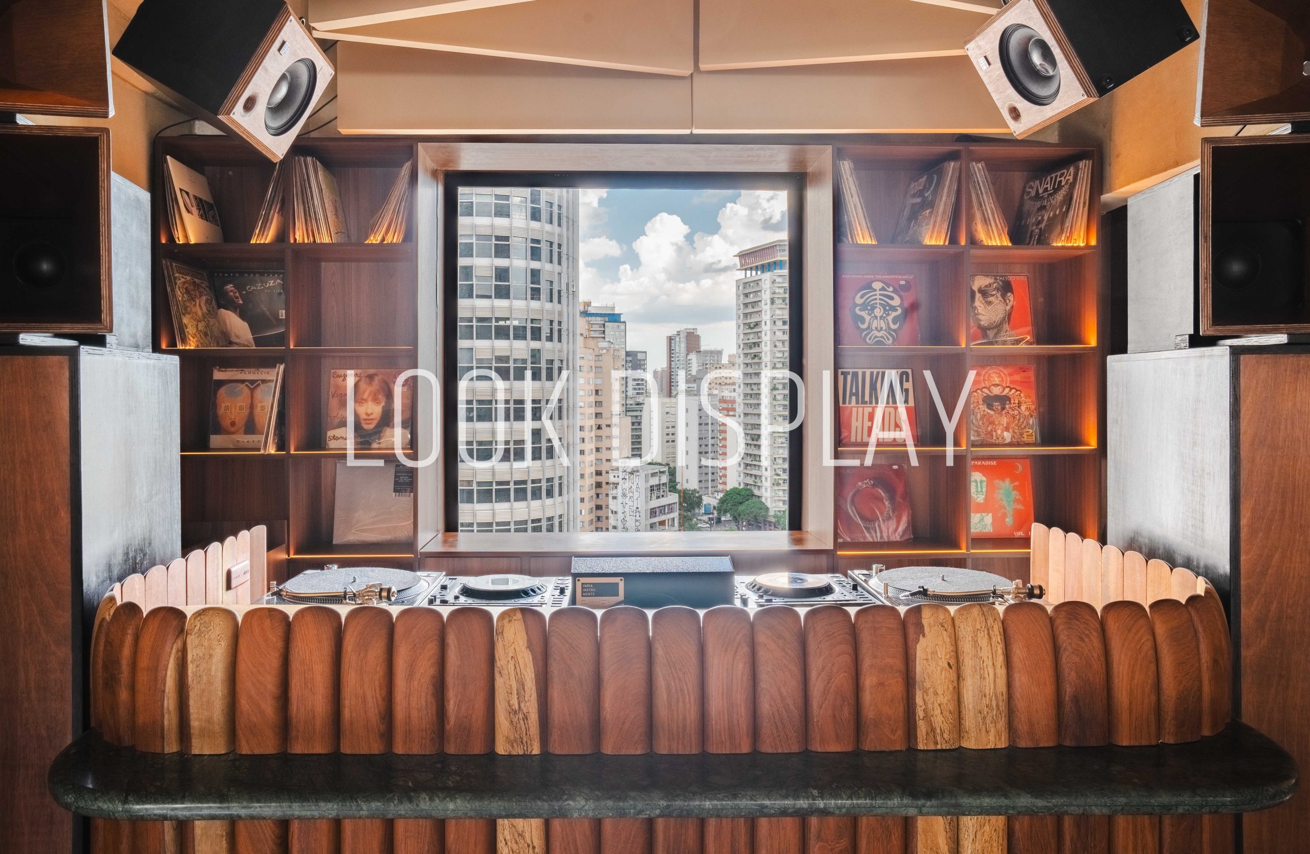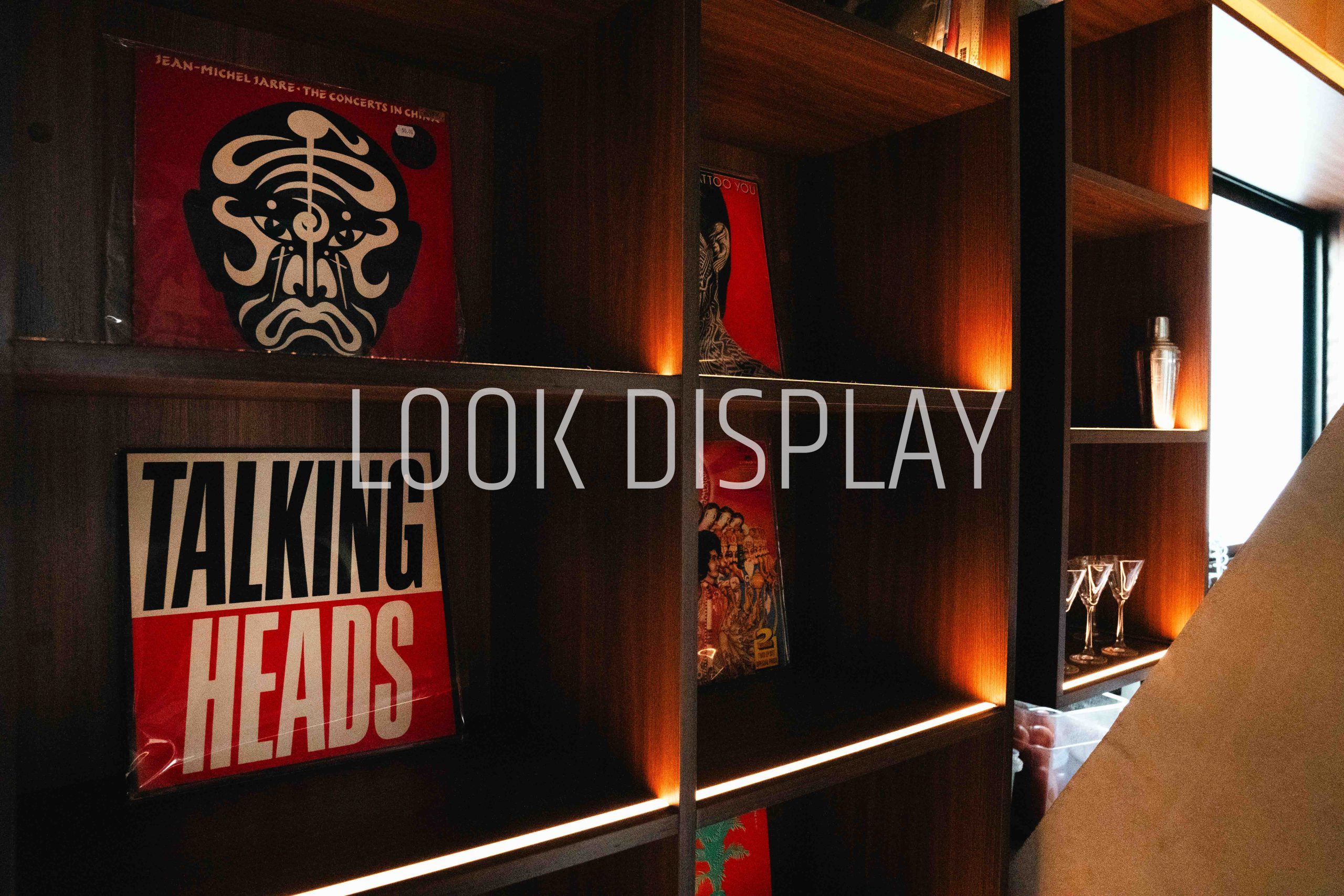- Nichos iluminados para exposição de discos de vinil
