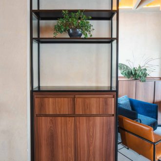 - Armários e mobiliários sob medida no salão principal