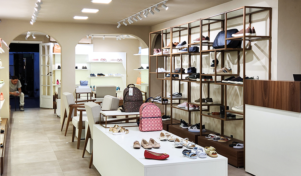 - Áreas de atendimento e provadores personalizados, com estética refinada